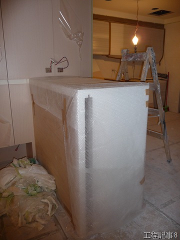 吧台的人造石也安裝上去了,