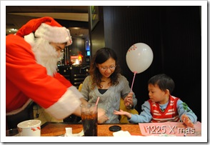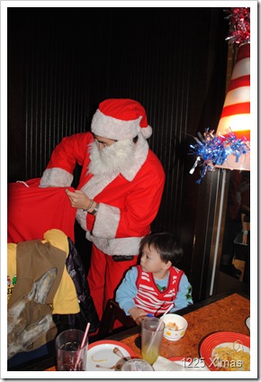 但服務生在點菜時就預告12點會有耶誕老公公送禮,
