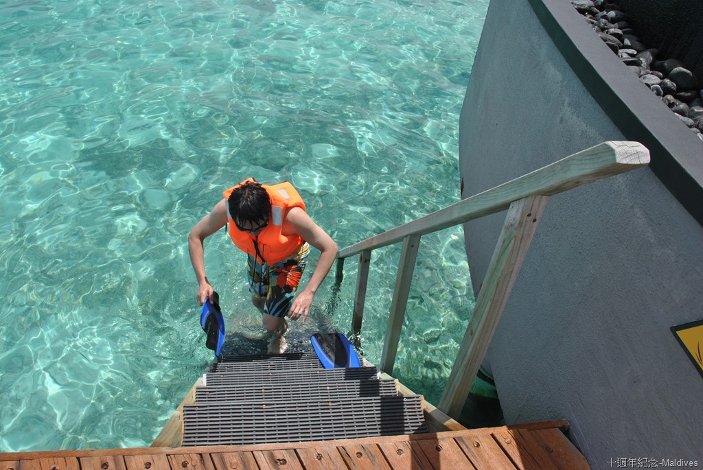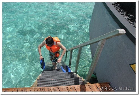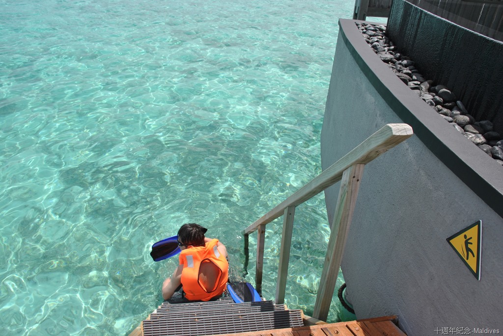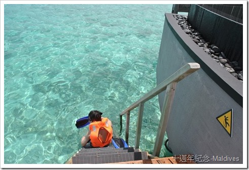 只敢在水比較潛的雙數水屋前,附近邊走邊潛,